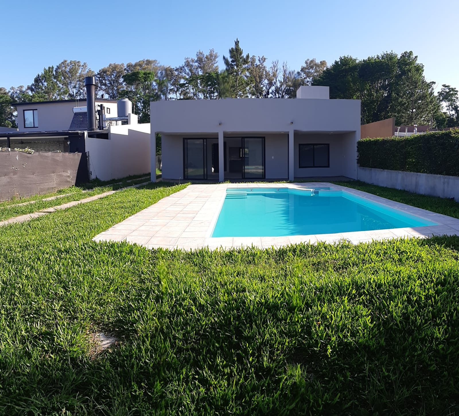 También tiene patio delantero y patio trasero, este ultimo contiene una Pileta de 8,50 x 4 m2, y en el final de terreno cuenta con quincho y deposito.